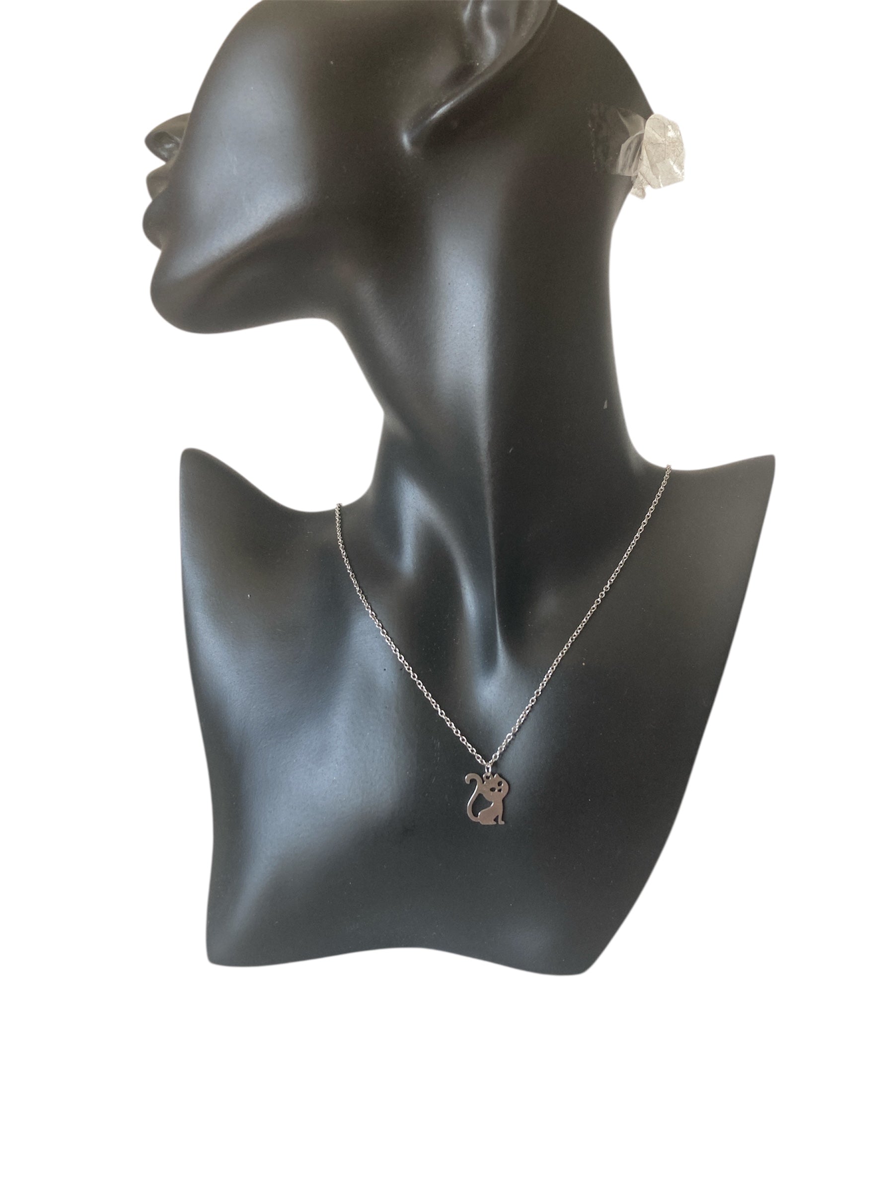 El Collar Salem Sentado es una joya delicada y encantadora, perfecta para amantes de los gatos y los detalles con personalidad. Este collar está formado por una cadena fina de eslabones en acero inoxidable y un colgante en forma de gato sentado, símbolo de independencia, protección y misterio.
