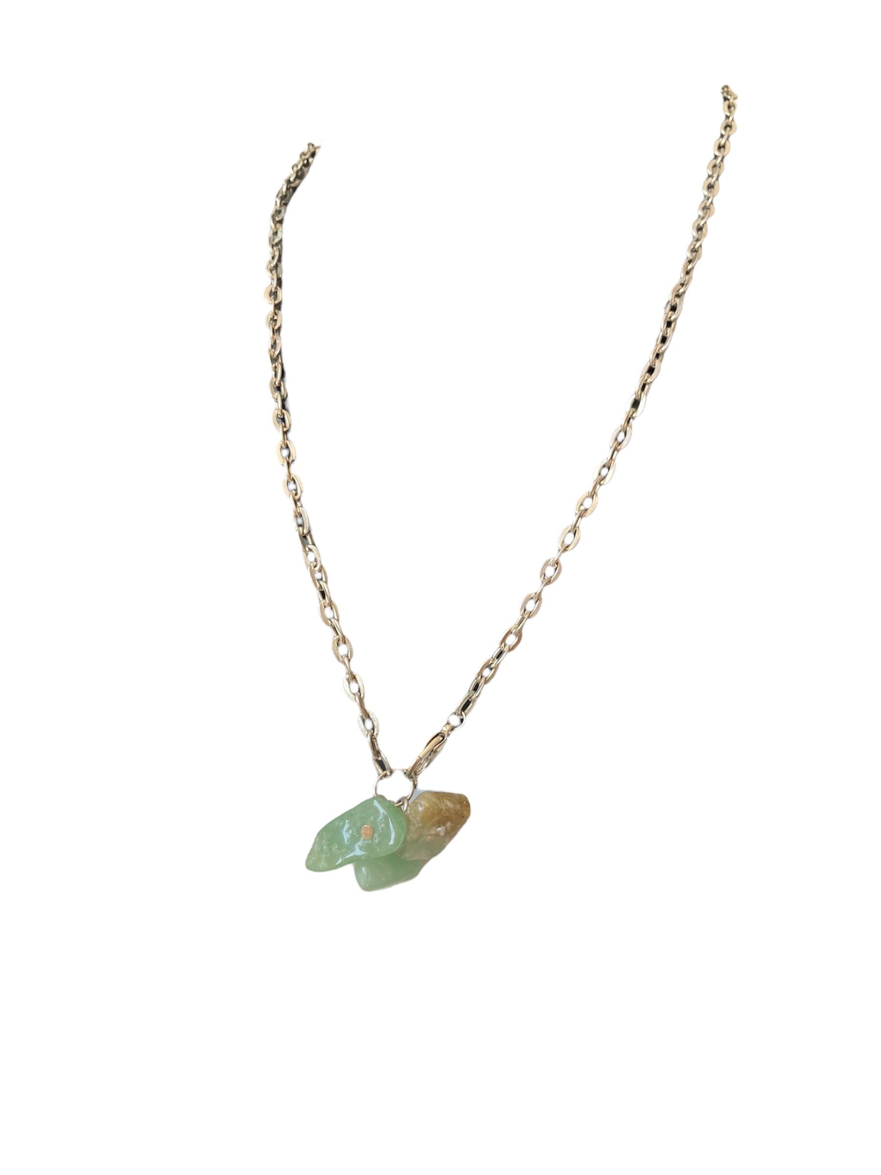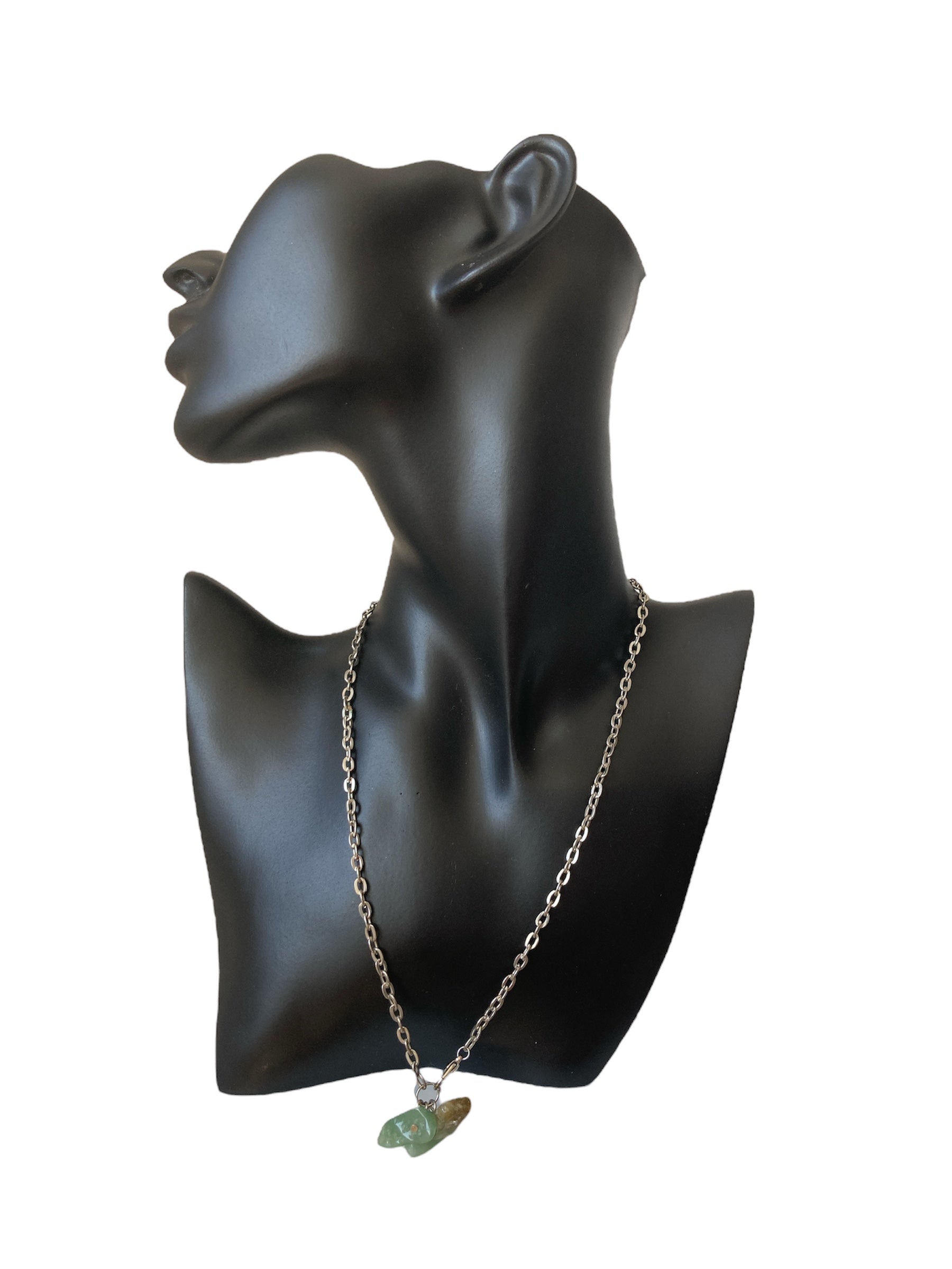 Materiales: acero inoxidable (cadena), jade natural (colgante)